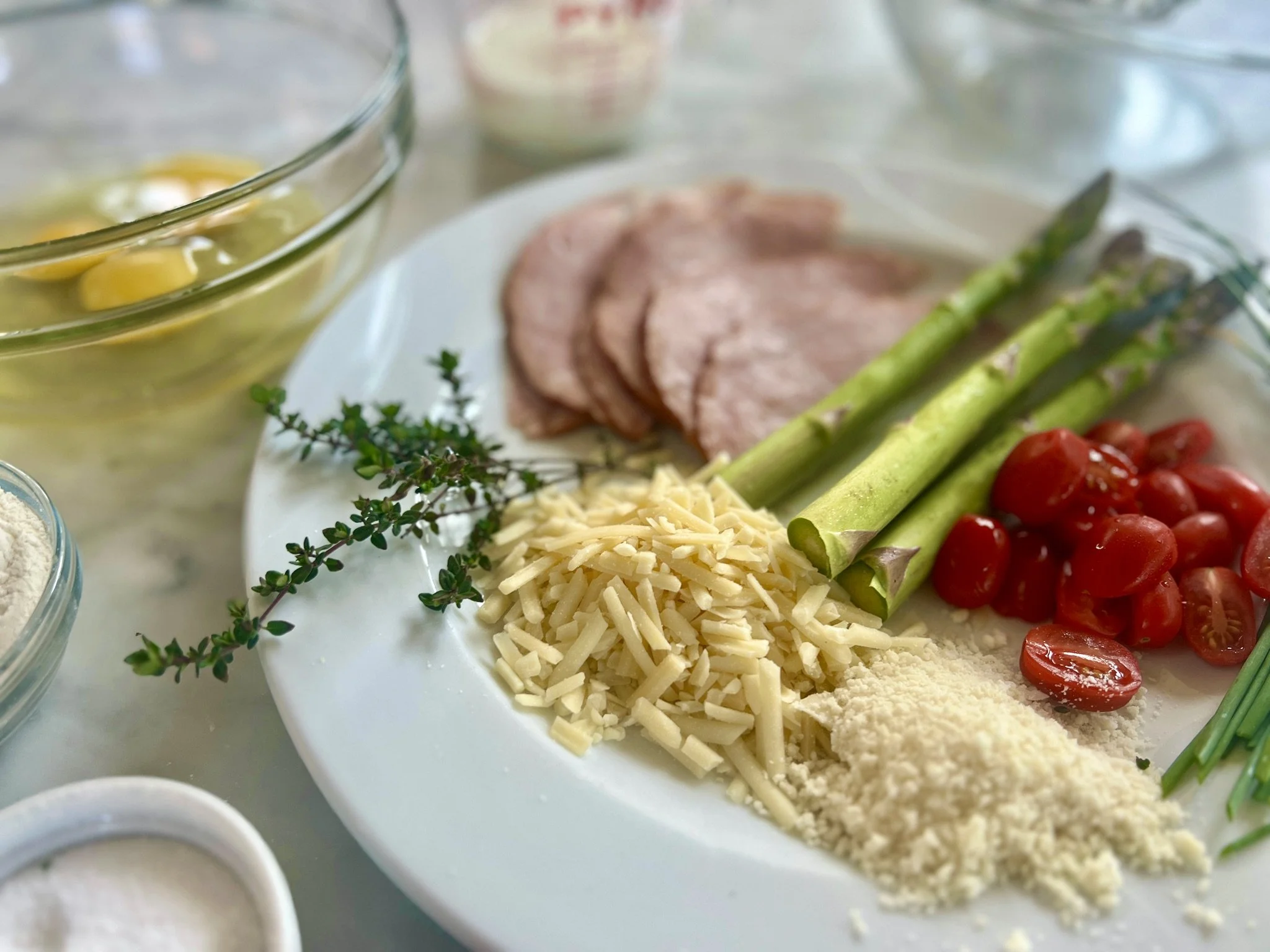 Preheat oven to 325°F and place oven rack in the lowest position. Measure out all ingredients (mise en place). Have your 10-inch non-stick fry pan on the stove top ready to go. (A fry pan with sloped sides works very well as does a cast iron pan.)