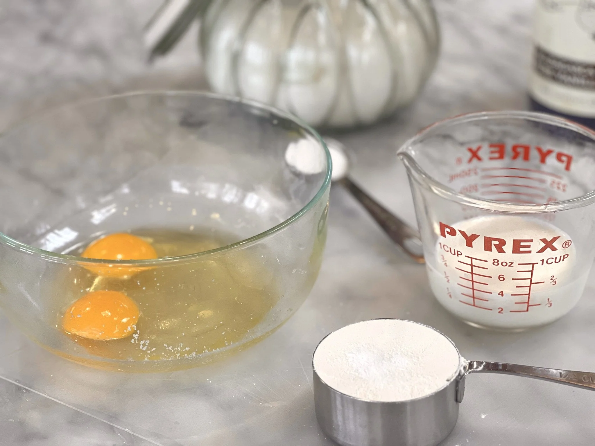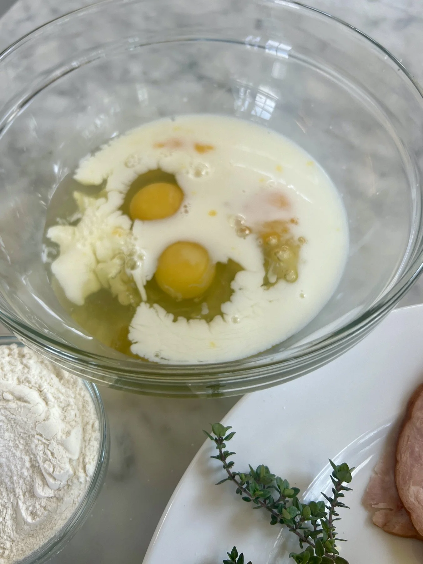 In past years when I made this recipe it called for a blender to mix the batter; I would comply and pull the bulky equipment out from underneath the kitchen counter. NO longer. All one needs is a standard sized whisk which is perfect for whipping the eggs, milk and flour into a silky batter.